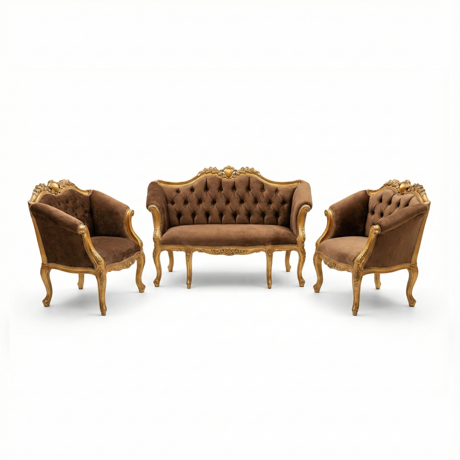 A true symbol of sophistication and timeless beauty, the George Versailles Antique Sofa & Armchair set brings enduring elegance, comfort, and prestige to any space.