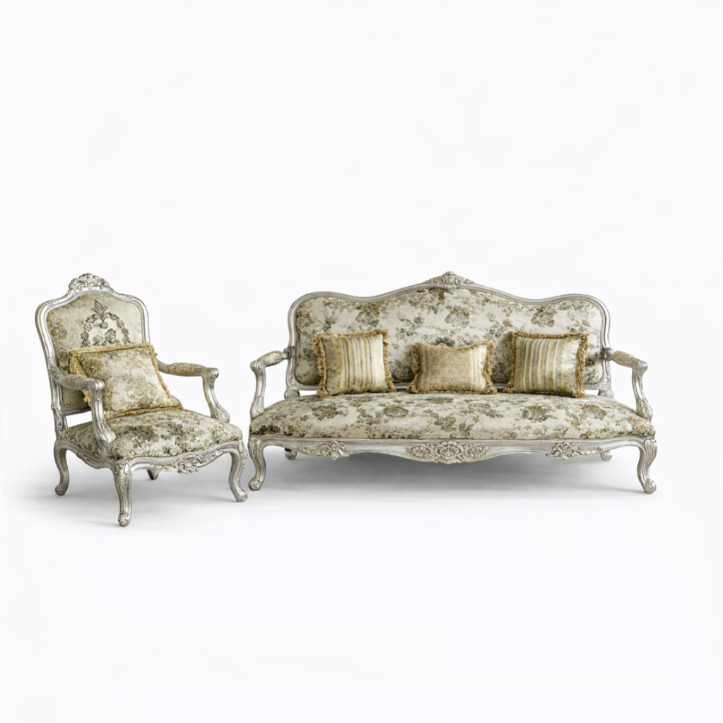 A refined single and double chair set crafted with intricate European detailing, luxurious upholstery, and timeless antique elegance—designed to elevate classic and luxury interiors.